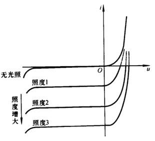 光電二極管,利用在反向電壓一定時,反向電流隨照度的增大而增大。這種特性廣泛用于遙控、報警及光電傳感器。伏安特性曲線見圖(4)