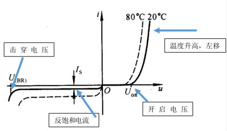 普通二極管,主要是利用它正向?qū)?,反向截止的特?單向?qū)щ娦?。伏安特性曲線見圖(2)